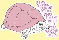 Women need to stop allowing maleness to impinge on our sense of self-worth and our feelings of self-acceptance. I for one have had enough of being pushed and pulled by maleness, but they know no different, so it’s up to us to make that change. I’m not going to allow my body, or the way I feel about my body to be shamed – I refuse to be put in the category of good fatty or bad fatty, I’m going to be my kinda fatty. Its been suggested to me that ‘no man will want me’ because of my size – but as a big, fat, feminist dyke I can safely say that the way I feel about my body has nothing to do with men, thanks.